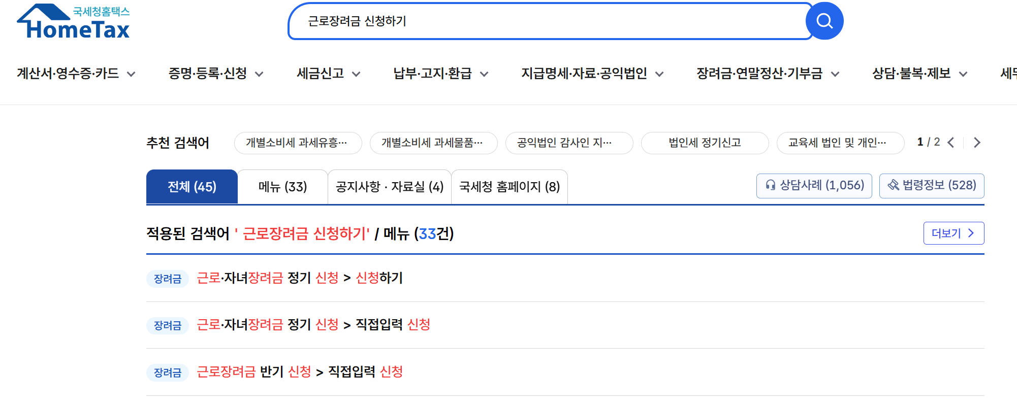 - 로그인 후 ‘근로·자녀장려금 신청’ 메뉴 선택